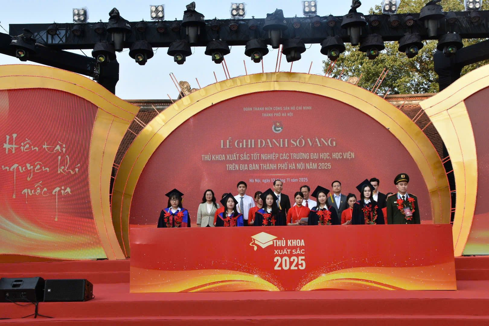 Lễ tuyên dương được Thành ủy, HĐND, UBND thành phố Hà Nội tổ chức tối 14/11/2025, ghi nhận 95 thủ khoa xuất sắc tốt nghiệp các trường đại học, học viện trên địa bàn. Đây là những sinh viên tiêu biểu có thành tích nổi bật trong học tập, rèn luyện; nhiều người là đảng viên trẻ, “sinh viên 5 tốt”, có đề tài nghiên cứu khoa học và sáng kiến sáng tạo được đánh giá cao.