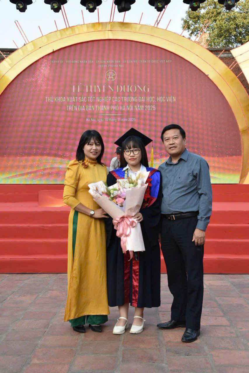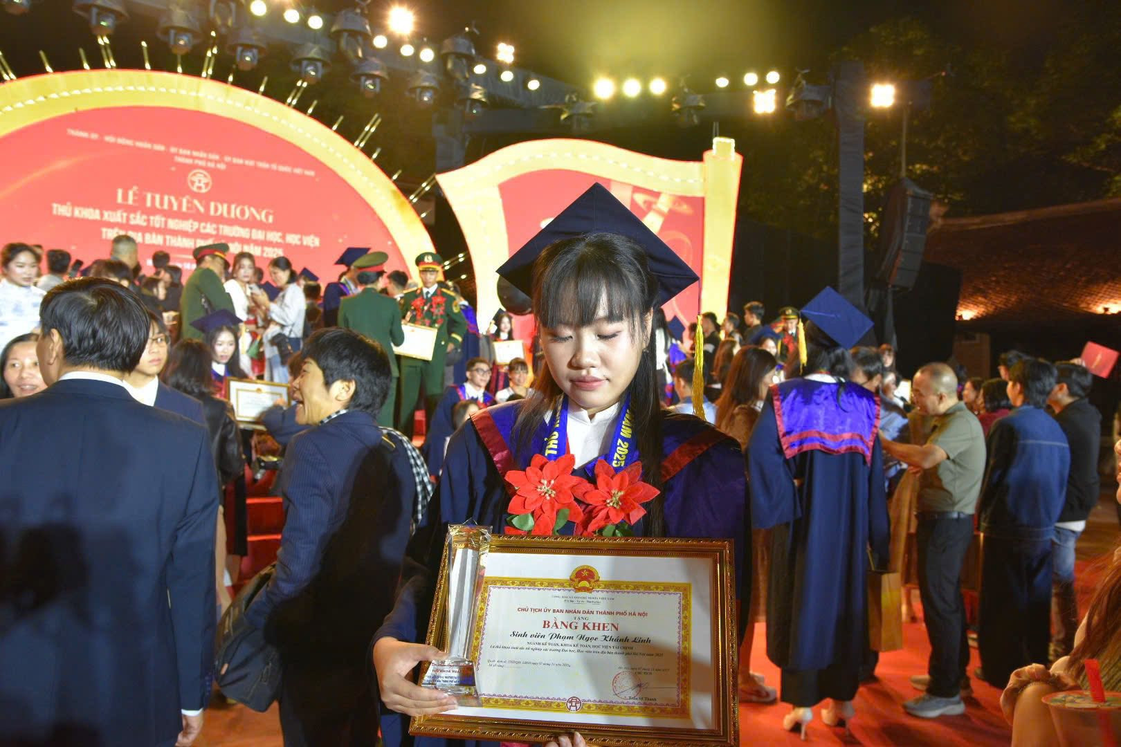 Trong số đó, cháu Phạm Ngọc Khánh Linh là đại diện ưu tú của khối ngành kinh tế, được trao tặng Bằng khen của UBND TP Hà Nội, phần thưởng và ghi danh vào Sổ vàng truyền thống của Thủ đô – minh chứng cho sự nỗ lực, bản lĩnh và trí tuệ của thế hệ trẻ.